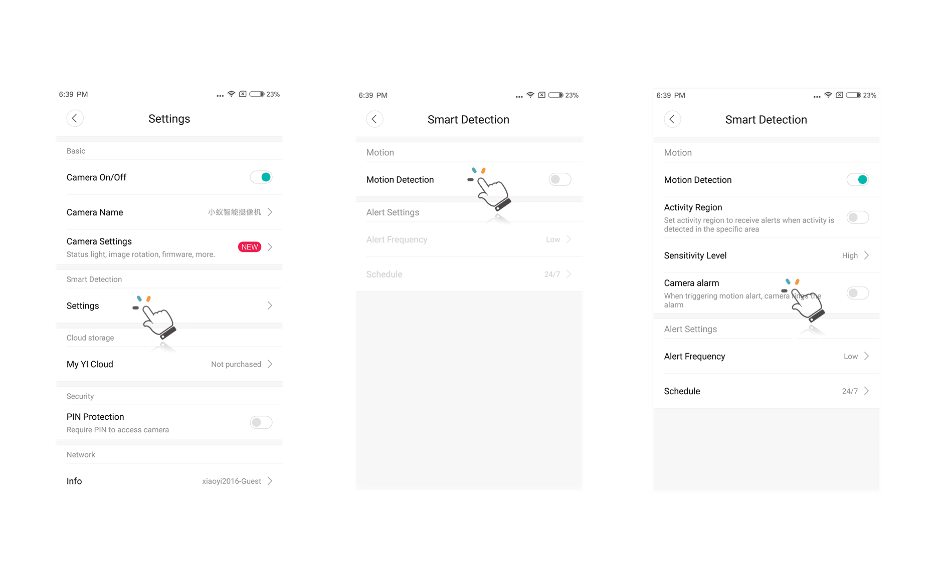 * Tất cả tính năng phát hiện chuyển động, chọn khung giờ phát hiện chuyển động, độ nhạy cảm biến tính năng báo động bằng loa đều được cài đặt trong ứng dụng Yi Home trên điện thoại.