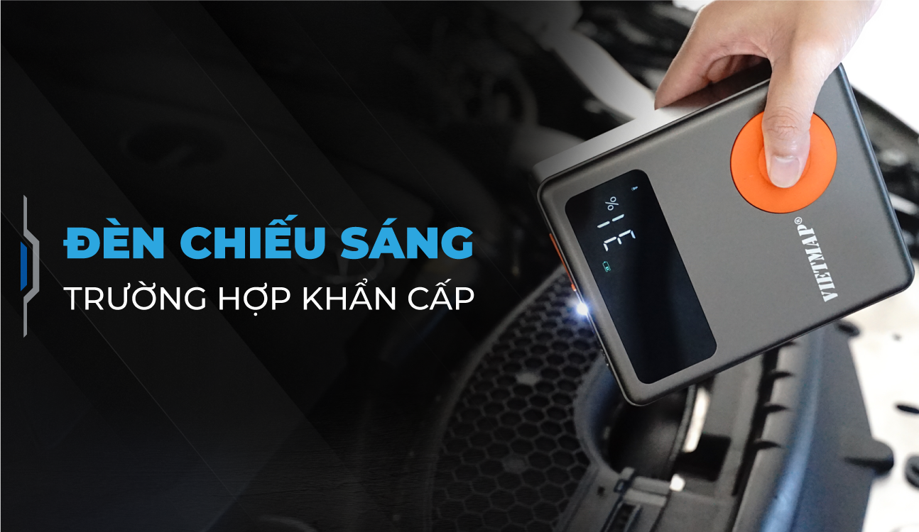 (Bơm lốp ô tô - Kích bình ắc quy - Pin sạc dự phòng - Đèn phát sáng trong trường hợp khẩn cấp).