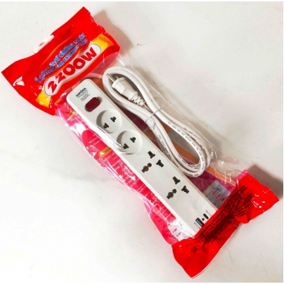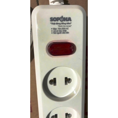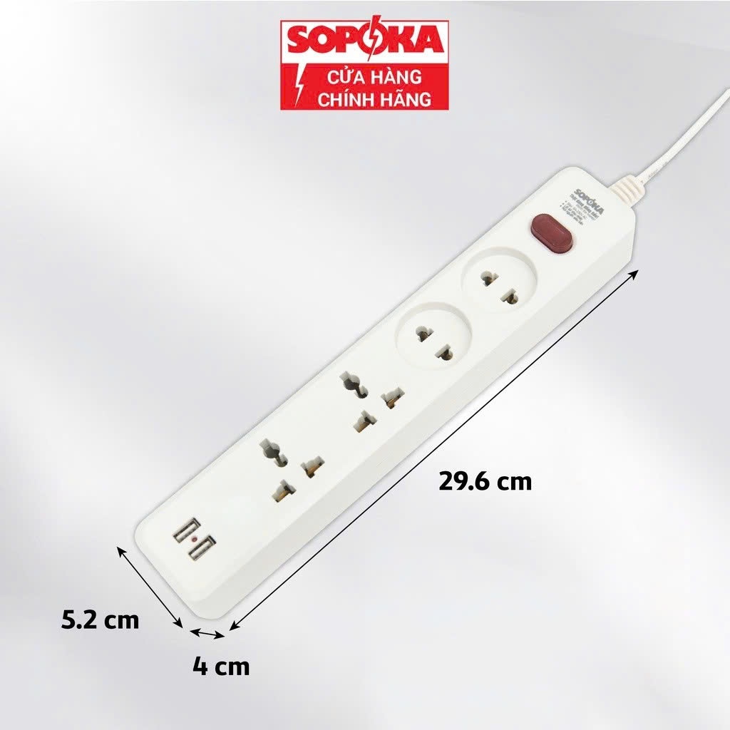 Ổ cắm 4C2-3 lõi sứ chống cháy 4 cửa + 1U1C 5A 2200W 2.5m (Trắng) SOPOKA