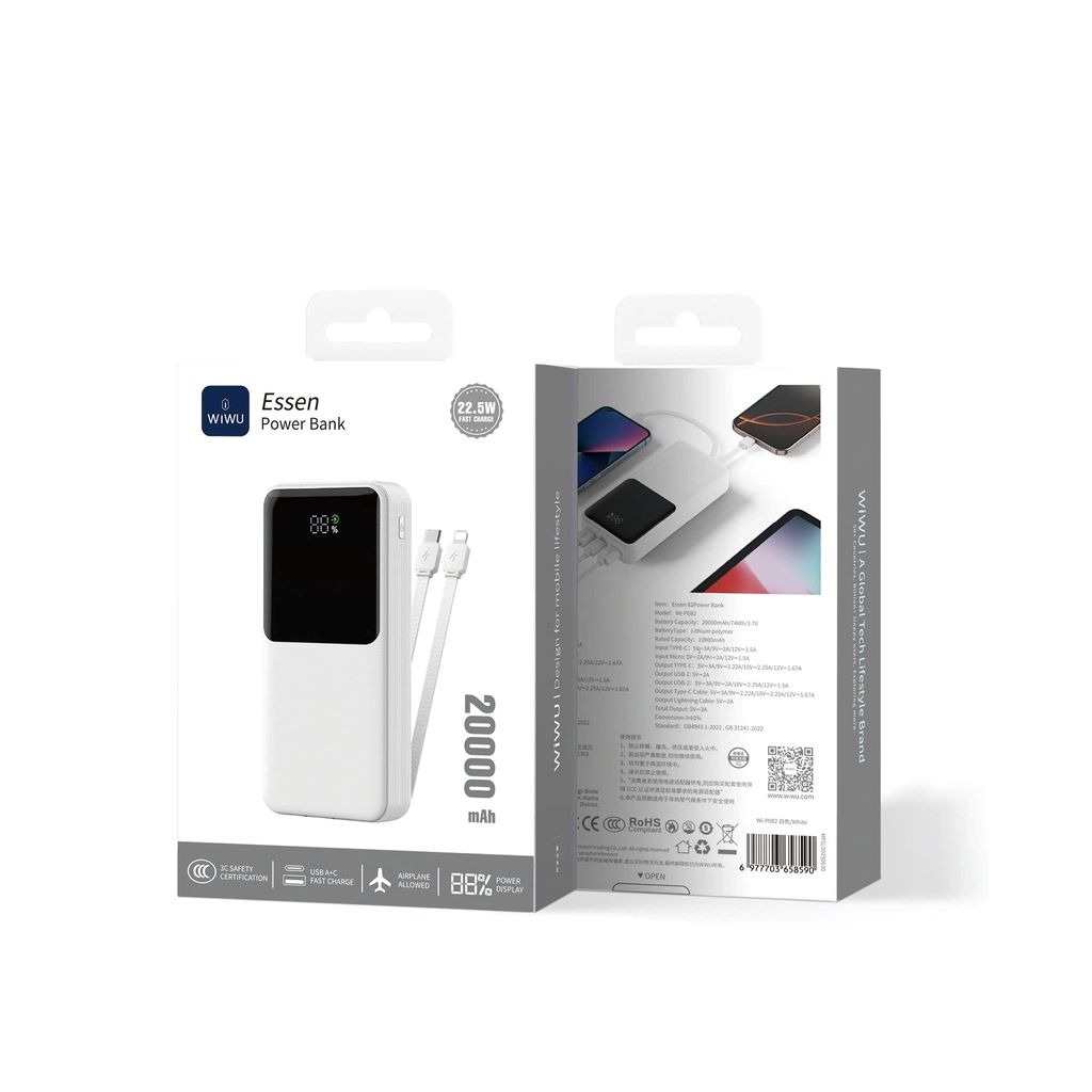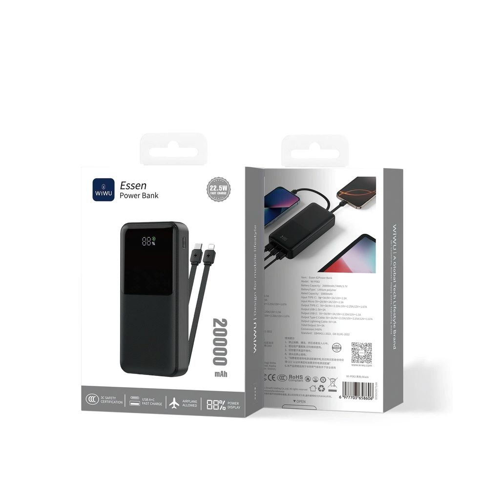 PIN DỰ PHÒNG Wi-P082 20000mAh 22.5W ESSEN WiWU TÍCH HỢP DÂY (TYPE-C & LIGHTNING)