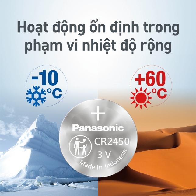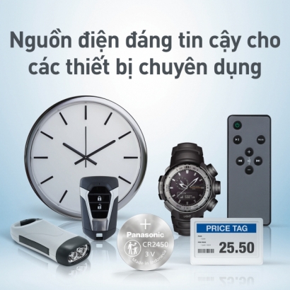 Nguồn điện đáng tin cậycho các thiết bị chuyên dụngPin CR2450 hỗ trợ nâng cao chất lượng cuộc sống và phát triển xã hội. Cung cấp nguồn điện lâu dài cho nhiều thiết bị, từ thiết bị khóa thông minh không cần chìa cho đến đồng hồ. Cung cấp năng lượng cho xã hộithông minhPin Lithium hình nút CR2450 của Panasonic đã phát triển để trở thành loại pin siêu nhỏ đáng tin cậy trên thế giới, với thời lượng pin dài, an toàn trong nhiều ứng dụng, từ thiết bị điện tử gia dụng đến thiết bị IoTcung cấp nguồn năng lượng cho xã hội thông minh. |