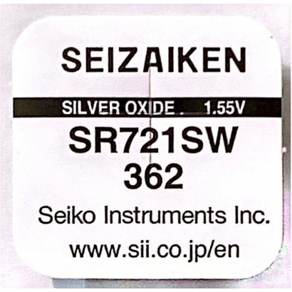 Seizaiken SR721SW (mã 362) là pin đồng hồ công nghệ Silver Oxide (oxide bạc) chất lượng cao của Nhật Bản. Pin có điện áp ổn định 1.55V, kích thước nhỏ gọn, chuyên dùng cho đồng hồ đeo tay và các thiết bị điện tử nhỏ cần nguồn điện chính xác và bền bỉ.