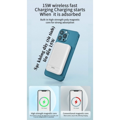 THÔNG TIN SẢN PHẨM: Pin sạc dự phòng Magsafe WiWU Snap Cube Magnetic Wireless 10000mah