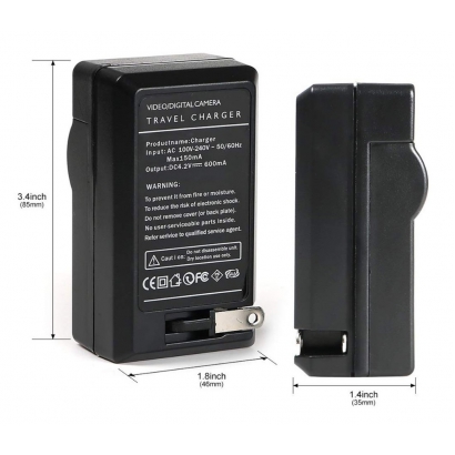 Bộ sạc được thiết kế với đầu cắm A /C có thể gập lại để sạc pin máy ảnh/ máy quay của bạn ở mọi nơi trên thế giới.