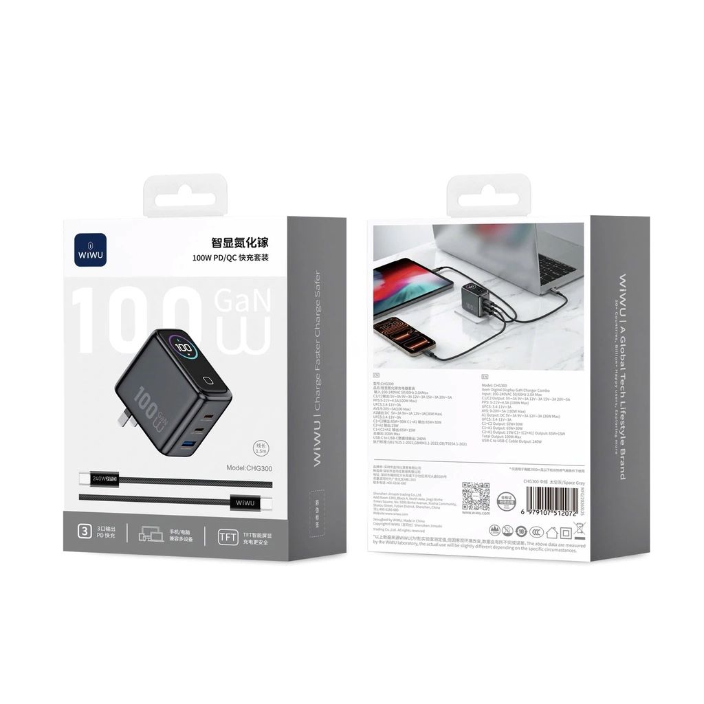 Bộ sạc GaN CHG300 Voyager 100W PD/QC WiWU