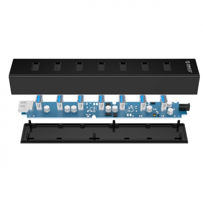 Hub ORICO H7013 7 cổng USB 3.0 với adapter rời 5V2A ổn định và bền bỉ.